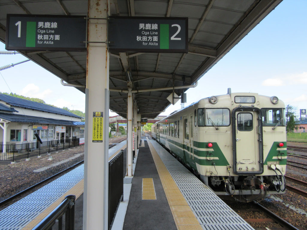 秋田県男鹿市にある秋田県最西部に位置する駅。JR男鹿線の終着駅であり、男鹿観光の玄関口である。島式ホーム1面2線の構造で、改札口がある駅舎とは構内踏切でつながっている。秋田駅方面への列車(全列車が秋田駅に直通)は1〜2時間おきに運行されている。