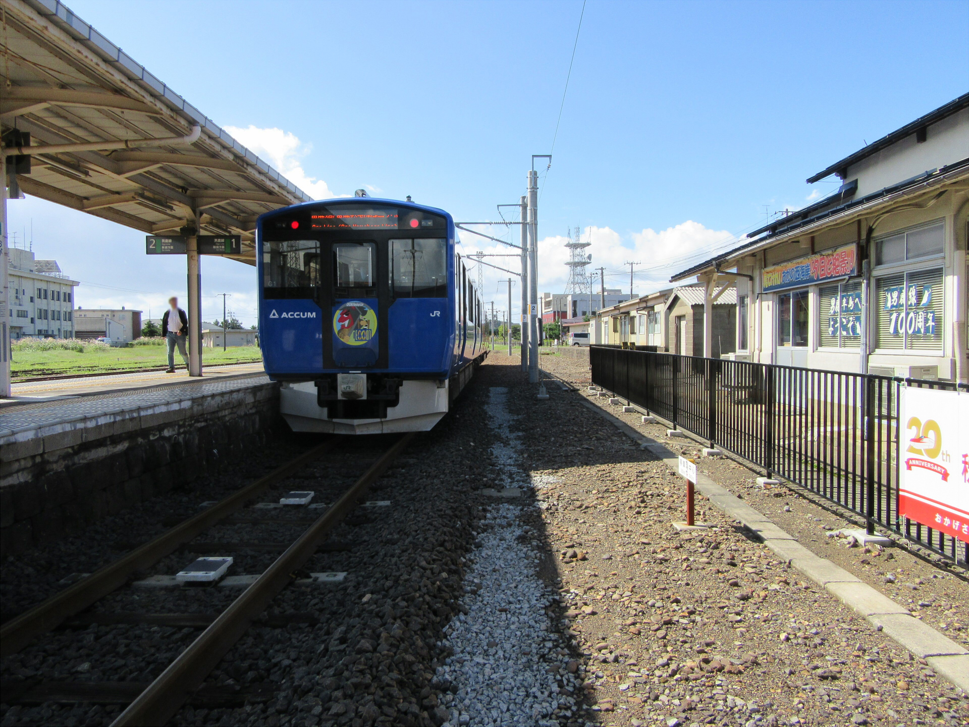 2012年にリニューアルされた現在の駅舎は、「大晦日の夜にナマハゲが訪れる古民家」をイメージした外装になっている。