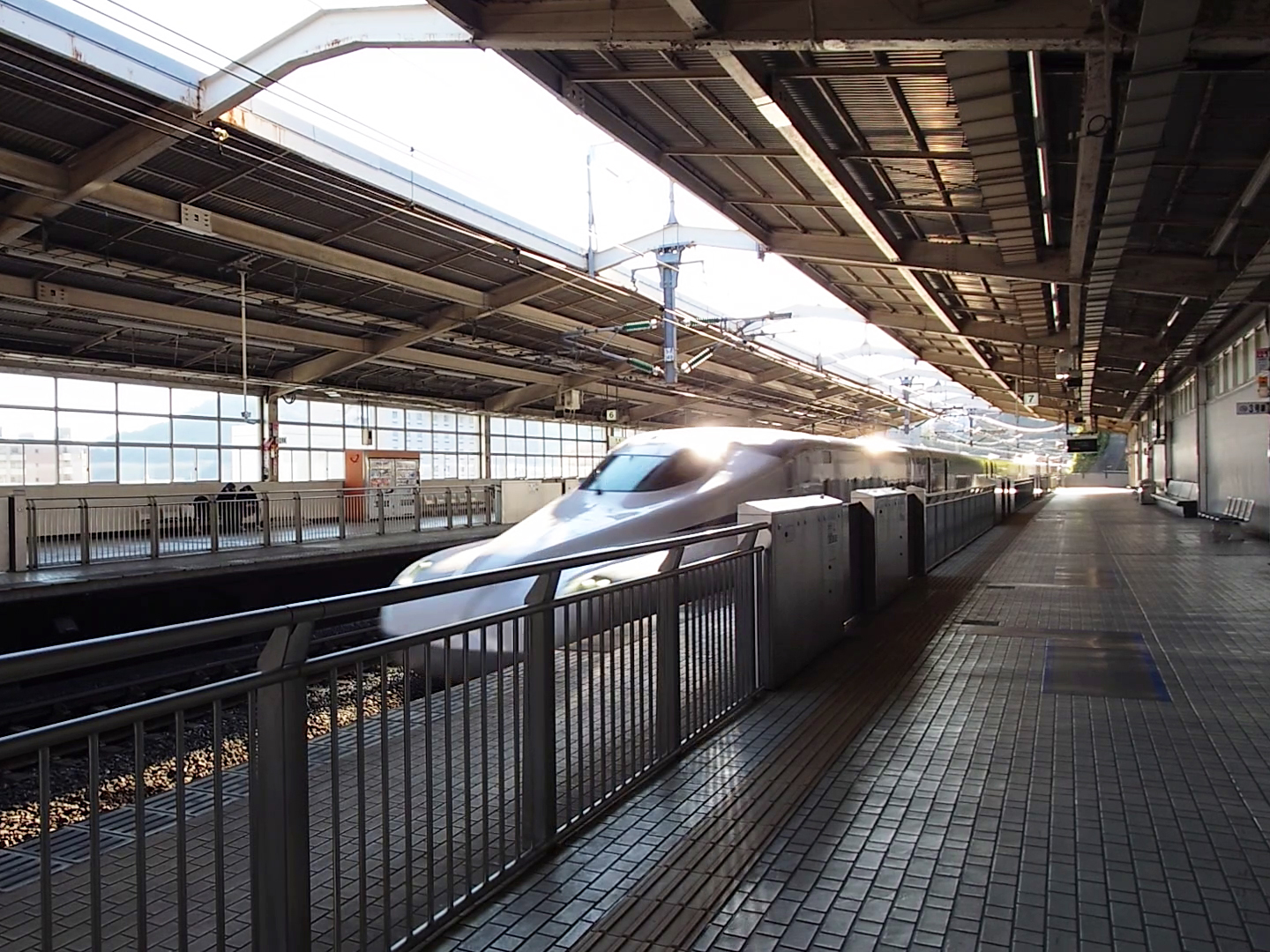 新幹線ホームは、相対式2面2線構造となっており、下り列車は6番線、上り列車は7番線を使用する。本線上に直接ホームが設置されており、敷地条件などの制約から待避線が無く、停車列車が後続の通過列車を待避する運用は行われていない。東海道・山陽新幹線の駅で同様の構造を持つ例として新神戸駅が挙げられるが、同駅は全列車が停車するため、待避線を持たずに旅客列車が通過する駅は、東海道・山陽新幹線では当駅のみである。