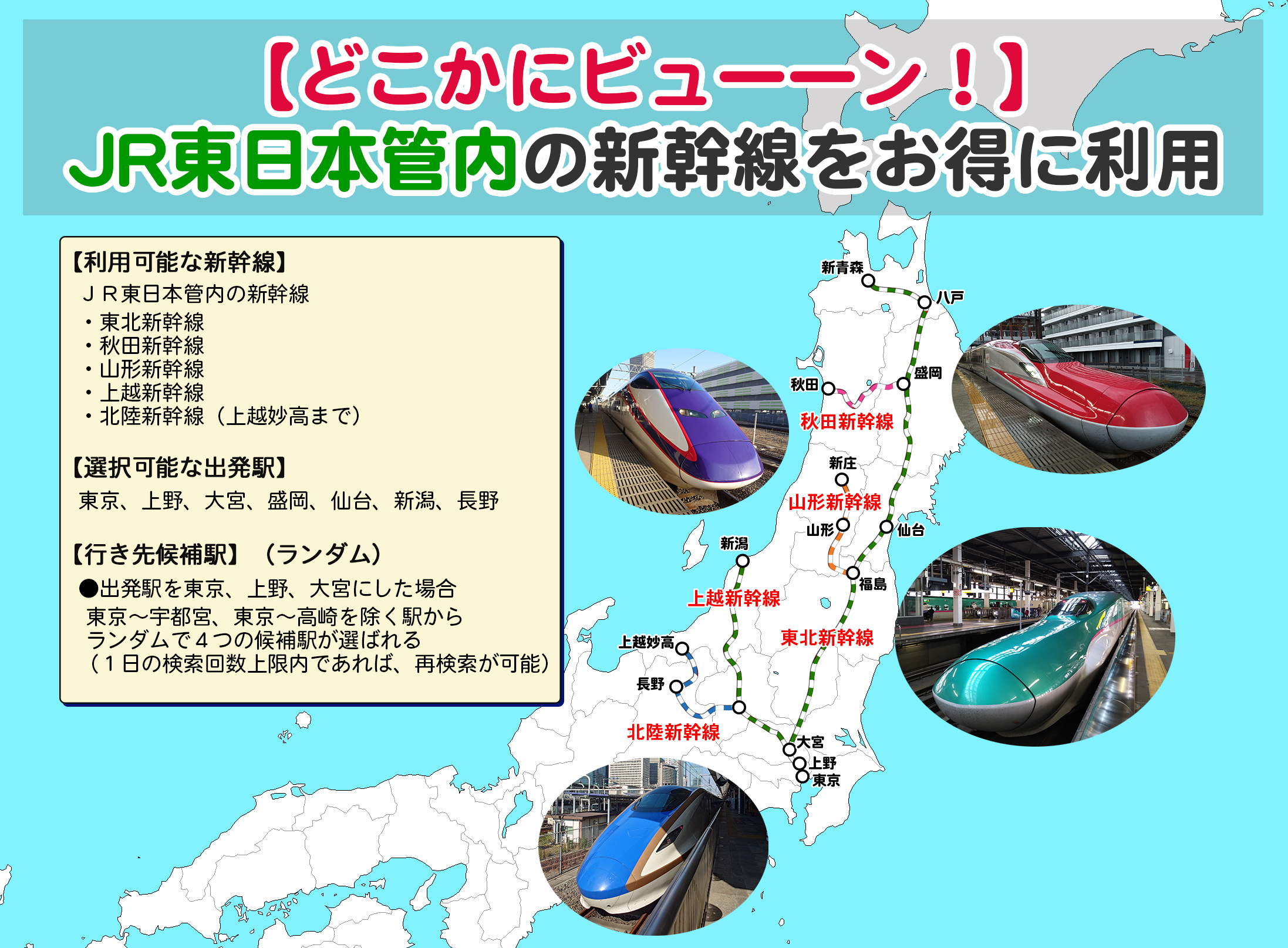 JR東日本管内の新幹線(東北新幹線・秋田新幹線・山形新幹線・上越新幹線・北陸新幹線)