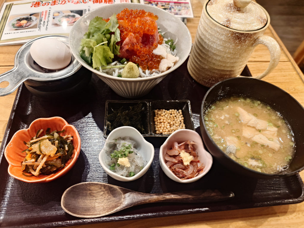 昼食は、「海鮮丼専門店 伊助」さんでいただくことにした。メニューが豊富で迷ったが、「港のまかない御膳」を注文。新鮮な地魚を使った海鮮丼で、途中から出汁をかけてお茶漬けとしても楽しめる内容だった。港町らしい定番ではあるが、場所に素直に合った一杯だった。