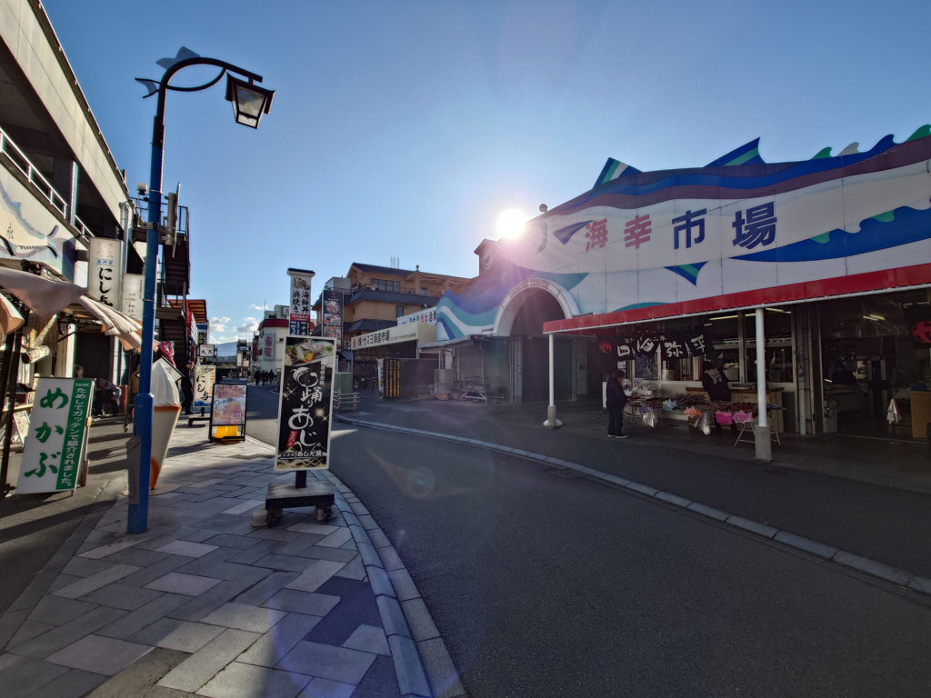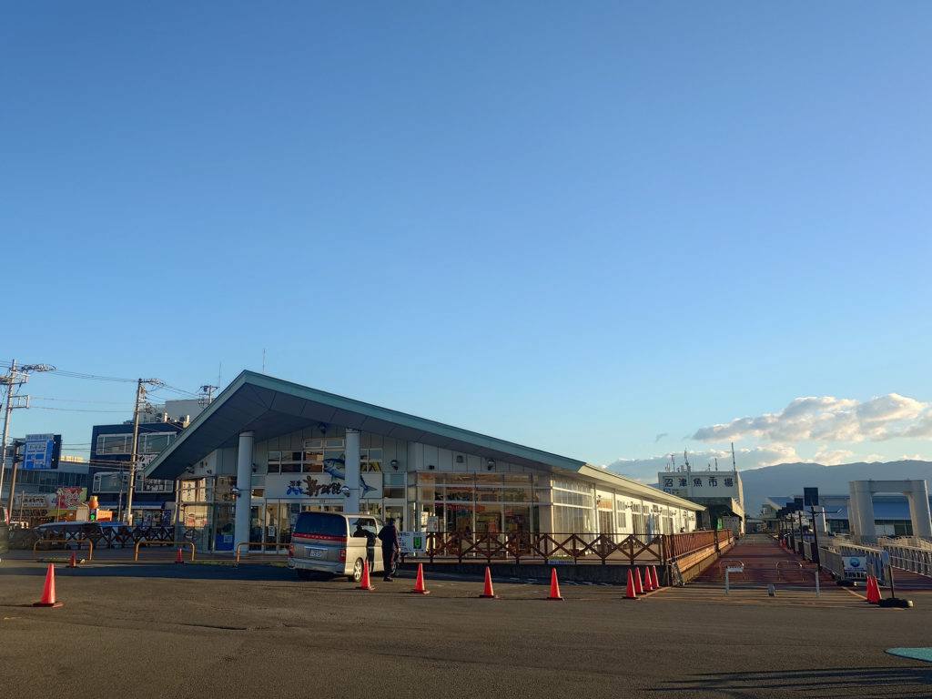 都心から東海道線で熱海へ向かい、沼津方面の東海道本線に乗り継ぐ。 沼津駅で下車すると、駅前は風が強く、想像していた以上に冷たかった。海が近い街らしい空気を感じる。 駅前からバスに乗り、沼津港へ向かう。所要は15分ほど。