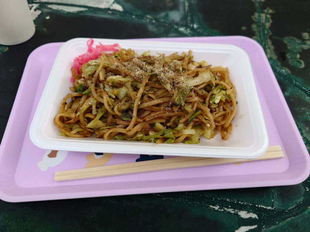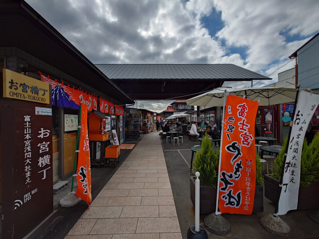 参拝を終えたあとは、富士山本宮浅間大社の近くにある「お宮横丁」で富士宮焼きそばを食べる。